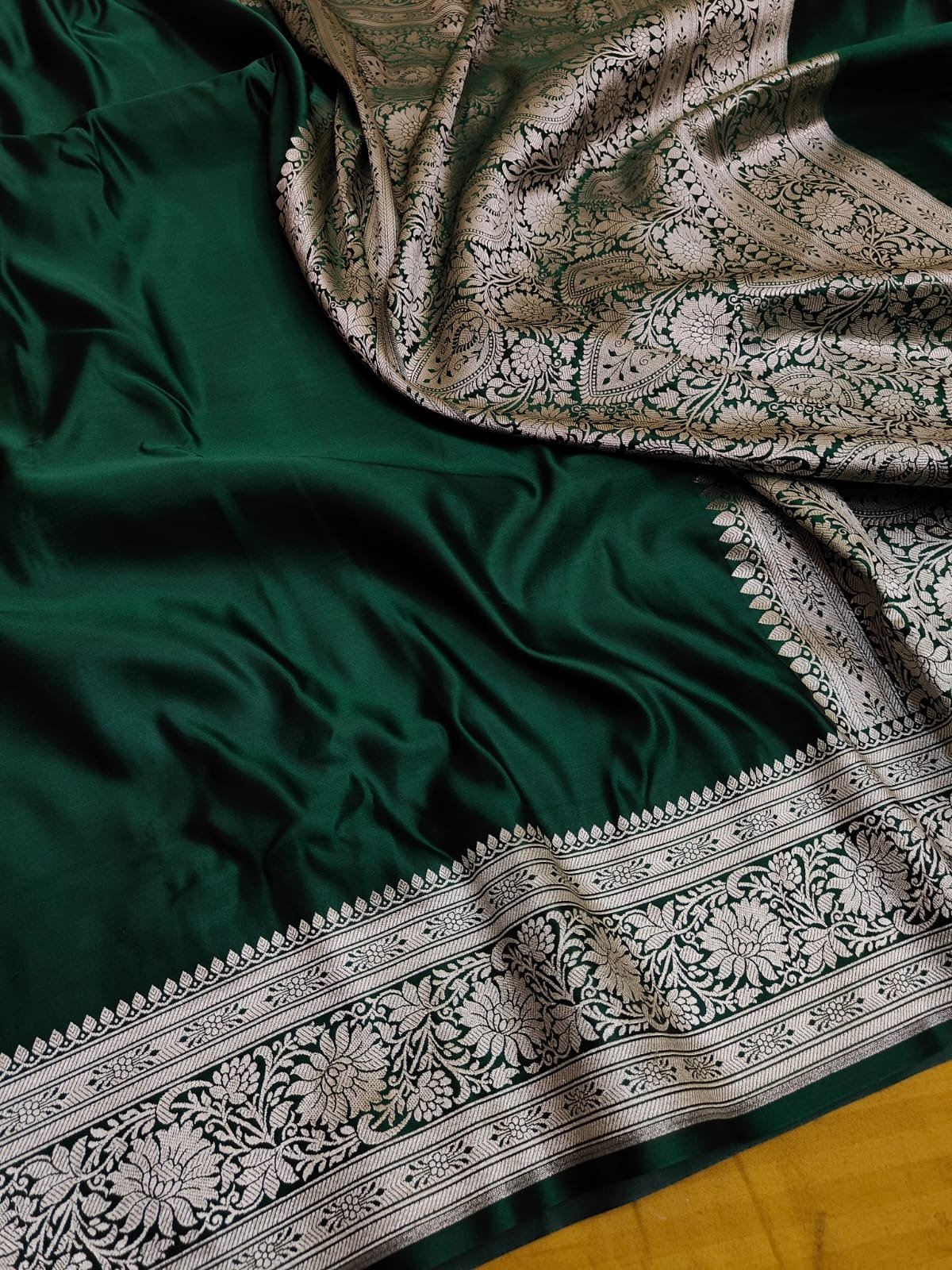 Pure Hanloom Satin Silk Plain Border Saree